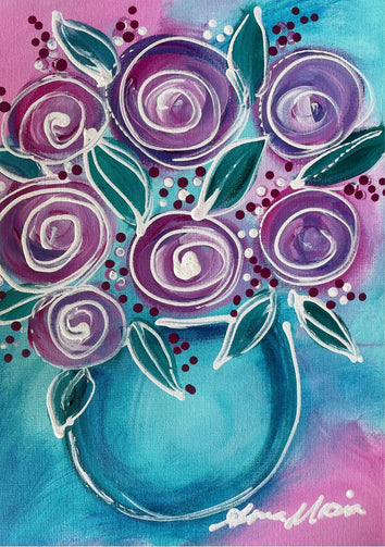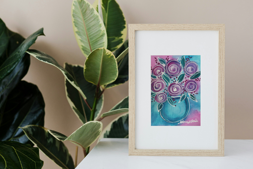 Blushing Grace was created with acrylic paint on canvas (2024). The matte A5 print is on 350gsm card stock (148×210 mm) and is ready to frame.