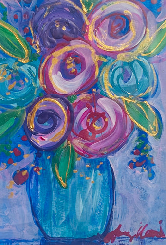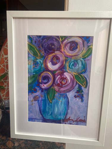 Moody Blooms was created with acrylic paint on cartridge paper. 2023 29 X 20cm Framed 42.5 x 32.5cm