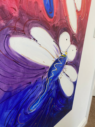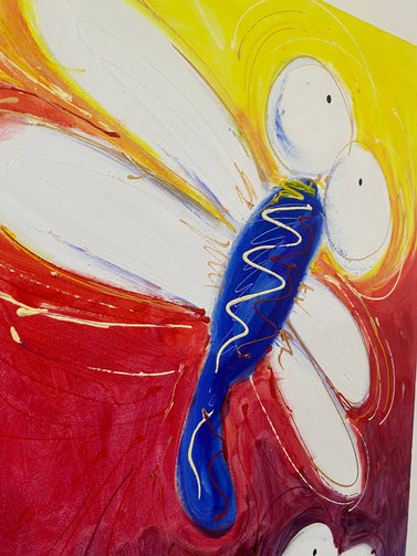 Dragonflies was created with acrylic paint on canvas c.2014, 123 x 62 x 4.cm.