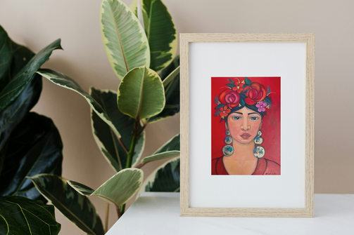 The Frida Kahlo inspired subject of Woman with Roses captures how the power of vibrant colour can evoke mood, and the balance of feminine energy and inner strength of a determined woman.